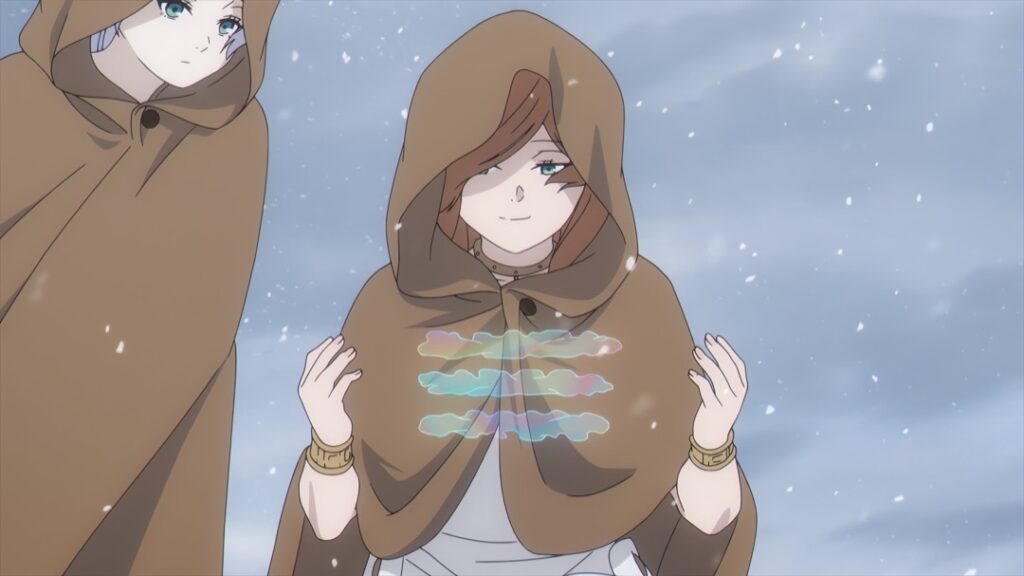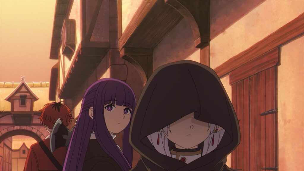 Though briefly, it seems Fern is able to detect a trace of mana flowing out of the hooded figure passing-by and who it belongs to. (She clearly didn’t see her face). When Frieren holds her power completely, she only releases a tiny bit when she’s moving —that’s why she does not move at all to capture the Stille at EP19. But this also shows how much Fern has improved at this skill! (Lawine and Kanne couldn’t detect that small trace).