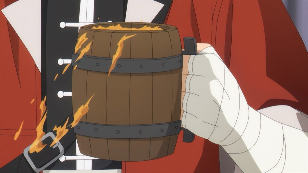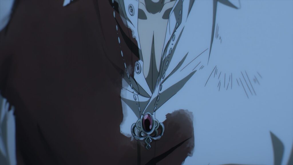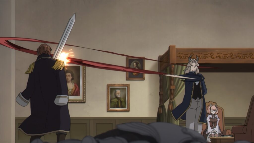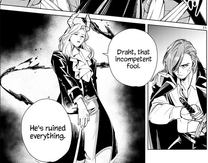 After the perceptive reasoning of the Graf, Lügner will blame Dhrat as a “fool” for ruining the plan, although resorting to violence is a comfortable situation for the demon. (We love this panel in the manga where he unleashes his blood magic in front of Granat).