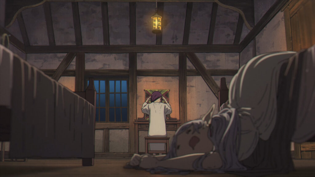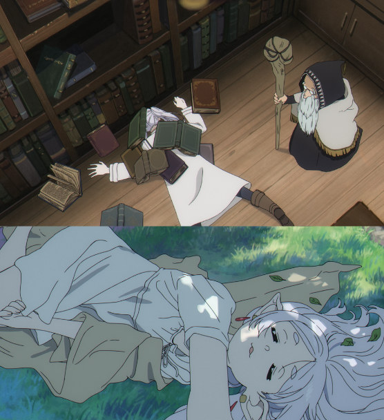 In this Episode at timestamp [9:40]Frieren can sleep almost anywhere, not a care in the world!
