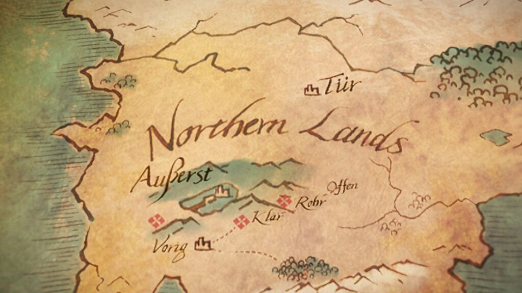Also we see a new kind of milestone on the left, it could be related to the territory of someone called Graf Dach โa symbol appearing in the next Episode (#30) and in the intro โwith a Sword and a mountain on the coat of arms.