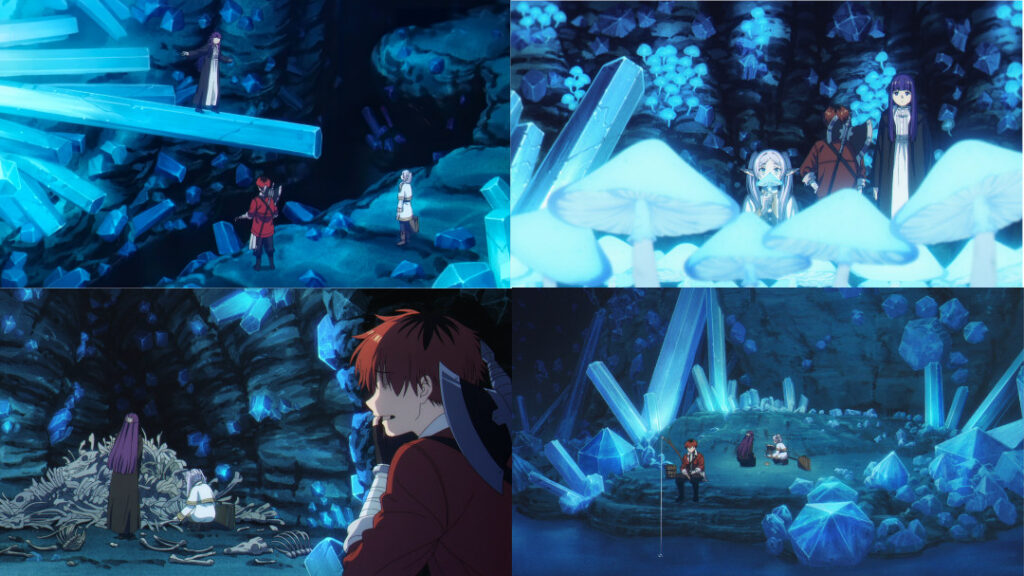 โข when Frieren broke Serieโs barrier in S01.EP21; and, because of the rain, Fern, รbel and Land took refuge in a cave where our purple-haired mage also lit a fire to dry their clothes.