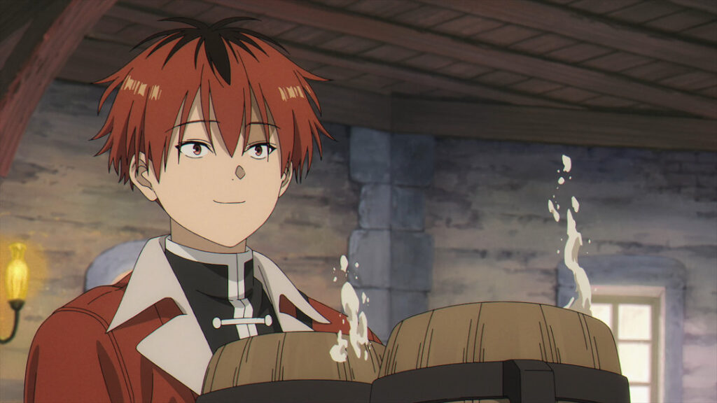 - our red-haired boy, fishing again, while Frieren makes fire โwith a crystal and the ax as a Flintstone, not with magic!!!